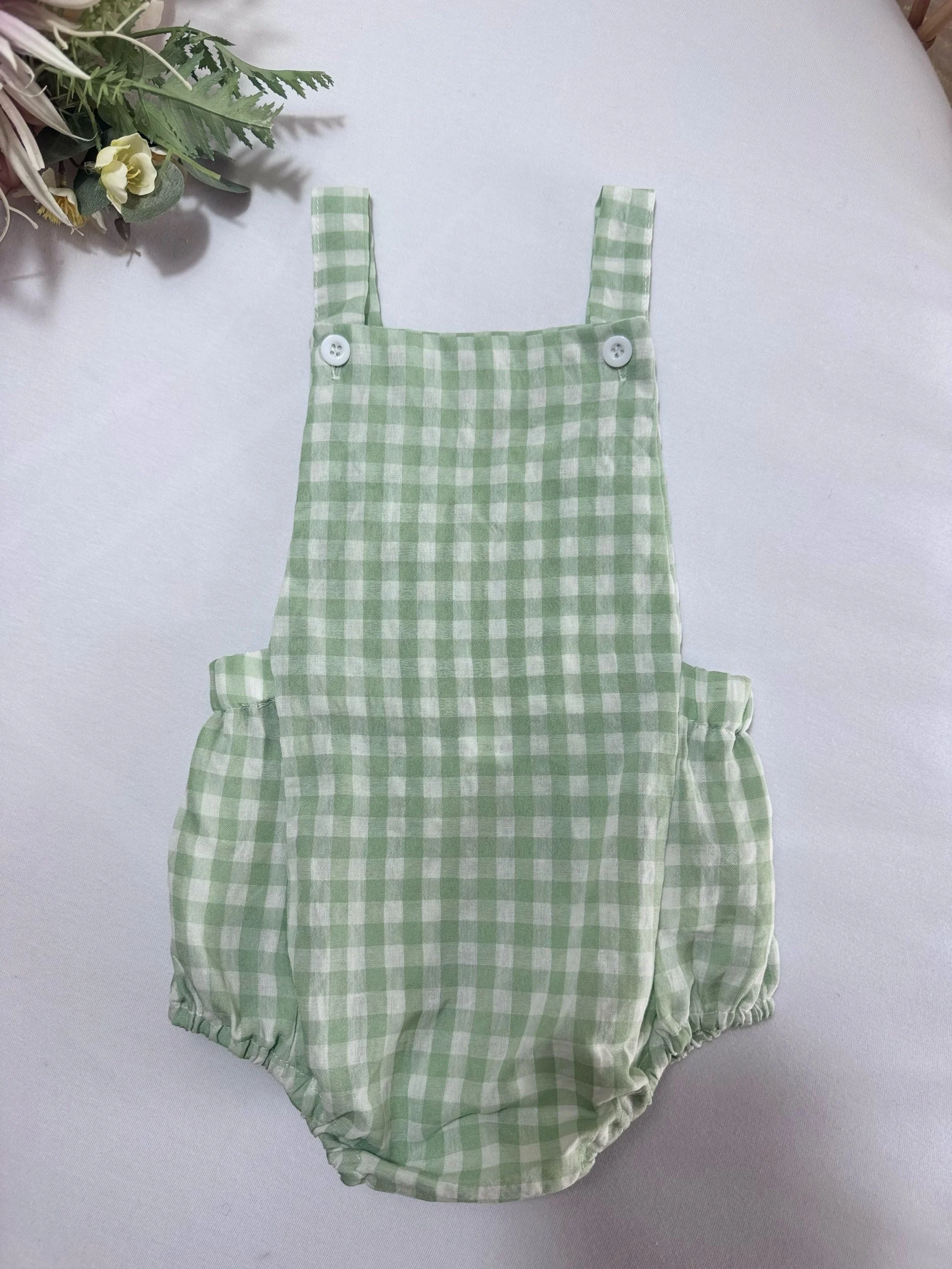 Featuring a classic green, peach, black and white check, this piece is perfect worn on its own or layered with a tee or knit underneath. A sweet, versatile style ideal for warmer days, outings or gifting.